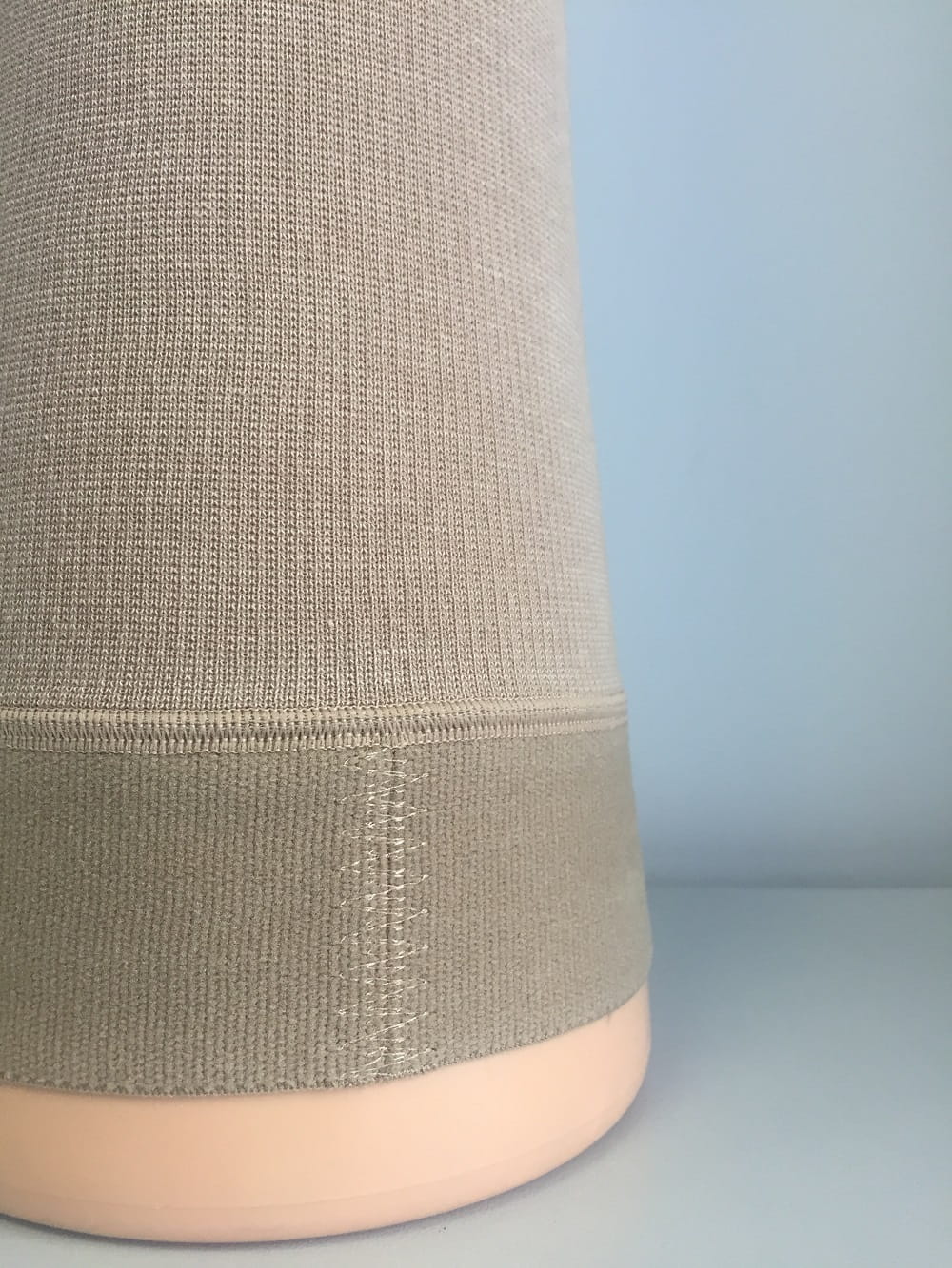 Резинка соединена и пришита к чулку благодаря современному оборудованию, за счёт чего качество швов на высоком уровне и не ощущаются при ношении, что приносит комфорт и уверенность обладателю чулок.