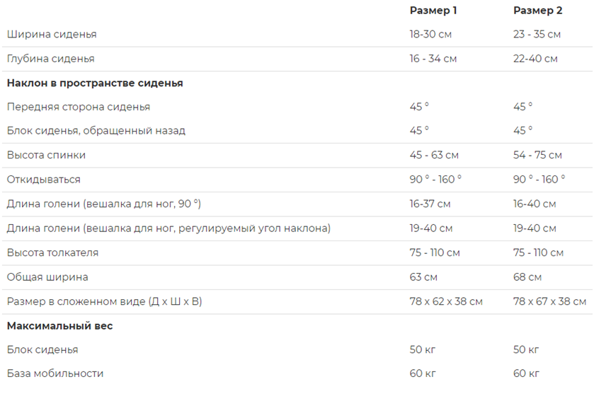 | *для высоты спинки от 65 см рекомендуется заказать удлинение ручек для толкания | ||||