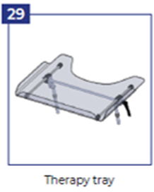 - Терапевтический столик прозрачный* (возможно только с держателем для принадлежностей (27) и возможно только с сиденьем, установленным по направлению движения И невозможно при использовании бедренных поддержек)