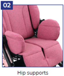 - Высокие бедренные поддержки с функцией подлокотников, регулируемые по ширине и глубине (высота поддержек 20 см) (02)