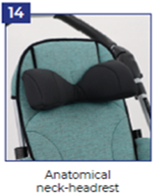 - Поддержки для туловища, бесступенчатая регулировка по высоте и ширине (размер 1: 8 x 10 x 2 см, размер 2: 10 x 12 x 2 см) (15)