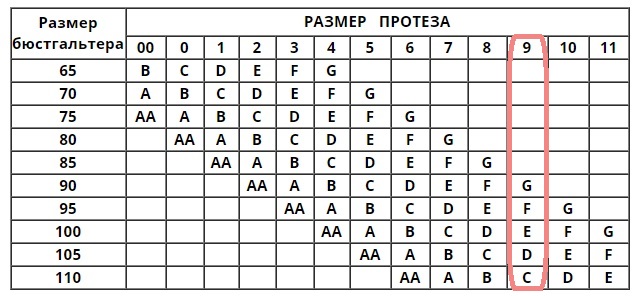 Размер протеза