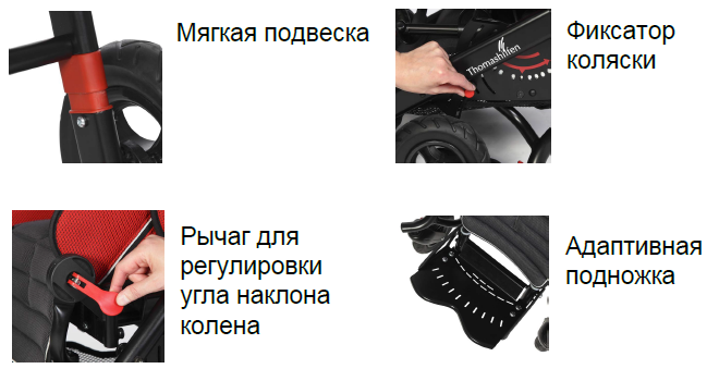 Коляска может быть оснащена дополнительными аксессуарами в соответствии с потребностями пользователя.