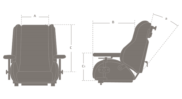 • при корректировке угла спинки поворотные точки проходят через тазобедренный сустав, это гарантирует, что положение головы и тела не изменится даже при откинутой спинке.