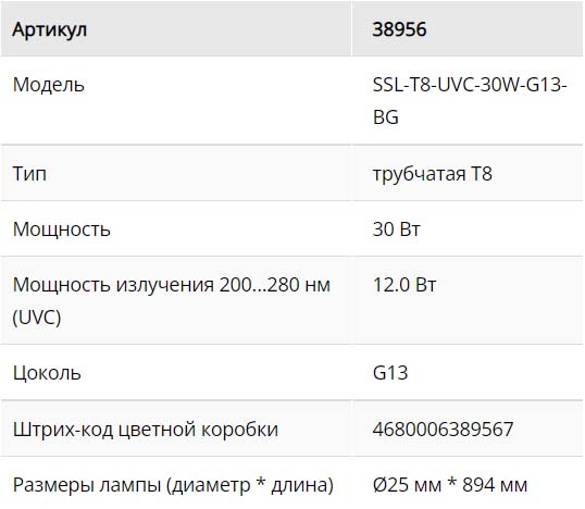 Лампа бактерицидная SSL-T8 30W