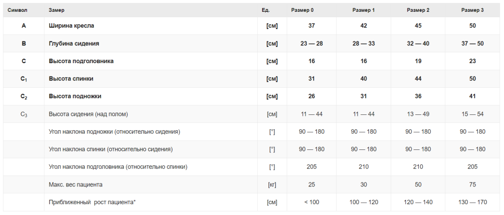 *Измерение роста не является основой для подбора размера оборудования.