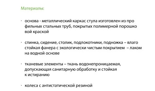 Отклонение спинки стула от вертикали – 0…40 градусов.