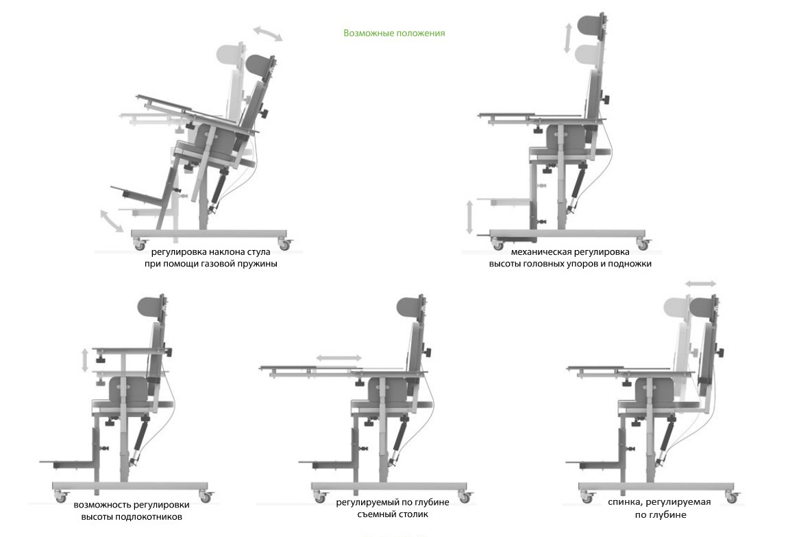Отклонение ножной секции стула от вертикали – 10… 60 градусов.