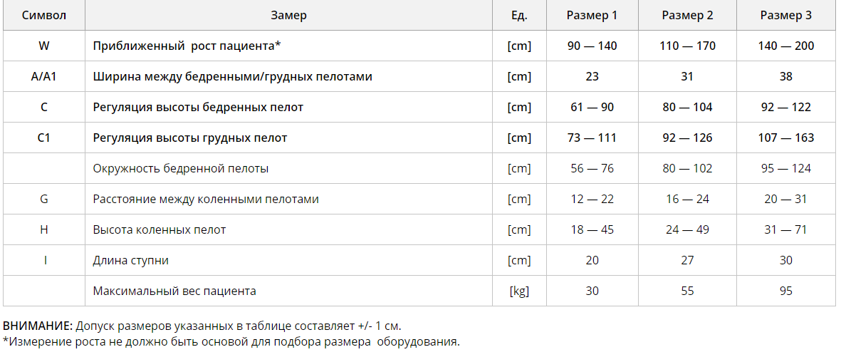 Таблица размеров: